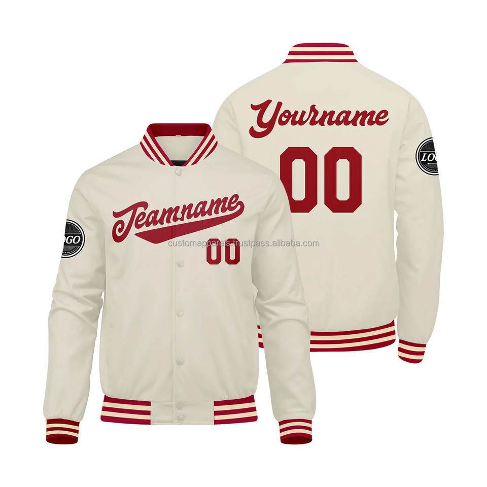 เสื้อแจ็คเก็ตขนสัตว์ปักโลโก้ทีมวิทยาลัยแขนเสื้อหนังแบบกำหนดเอง