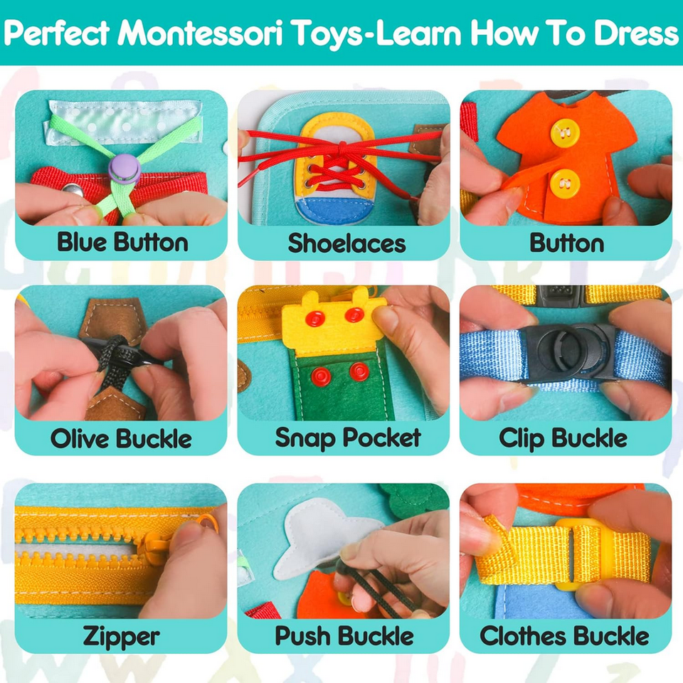 มอนเตสซอรี่สีน้ําหนักเบาที่กําหนดเองรู้สึกว่าเด็กวัยหัดเดินกระเป๋าบอร์ดยุ่งสําหรับการพัฒนาสติปัญญาการศึกษาในช่วงต้น