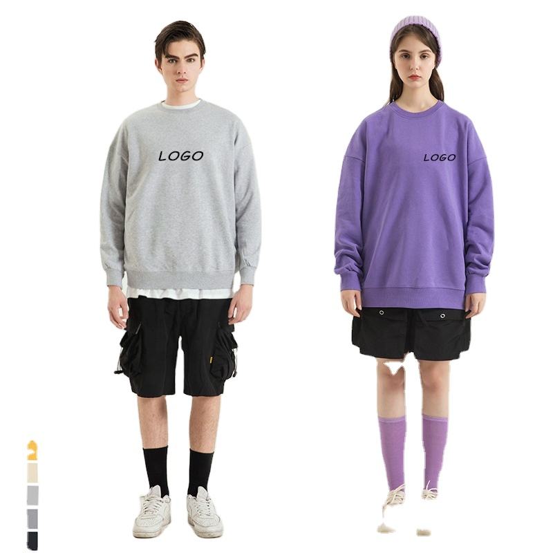 เสื้อสเวตเตอร์แบบสวมหัวแขนยาวผ้าคอตตอนมีฮู้ดสีทึบคอกลมสำหรับผู้ชายและผู้หญิงโลโก้ตามสั่ง100%