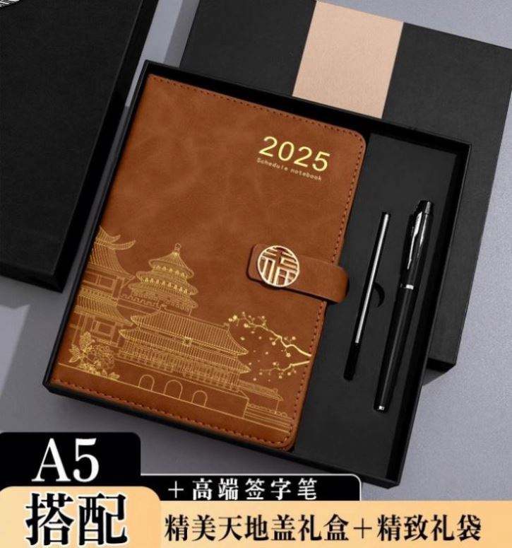 สมุดแพลนเนอร์ธุรกิจหรูหราปกแข็ง รุ่น A3 ปี 2025 พร้อมชุดของขวัญ โลโก้สั่งทำได้ วัสดุหนัง PU สีสั่งทำได้ 80 แผ่น เย็บเข้าเล่ม ยี่ห้อ Mairun