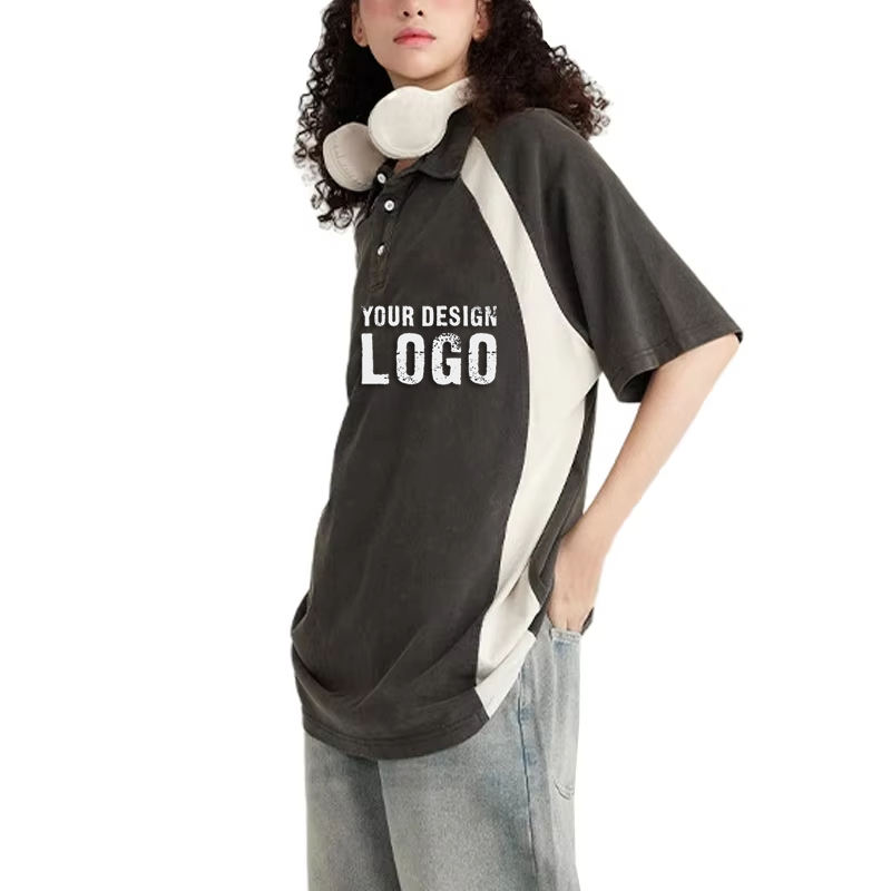 เสื้อโปโลผู้ชาย แขนสั้น ทรงหลวม คอปก ตัดสี ผ้า 285 กรัม สไตล์ลำลอง แฟชั่น พร้อมปักโลโก้ตามแบบ