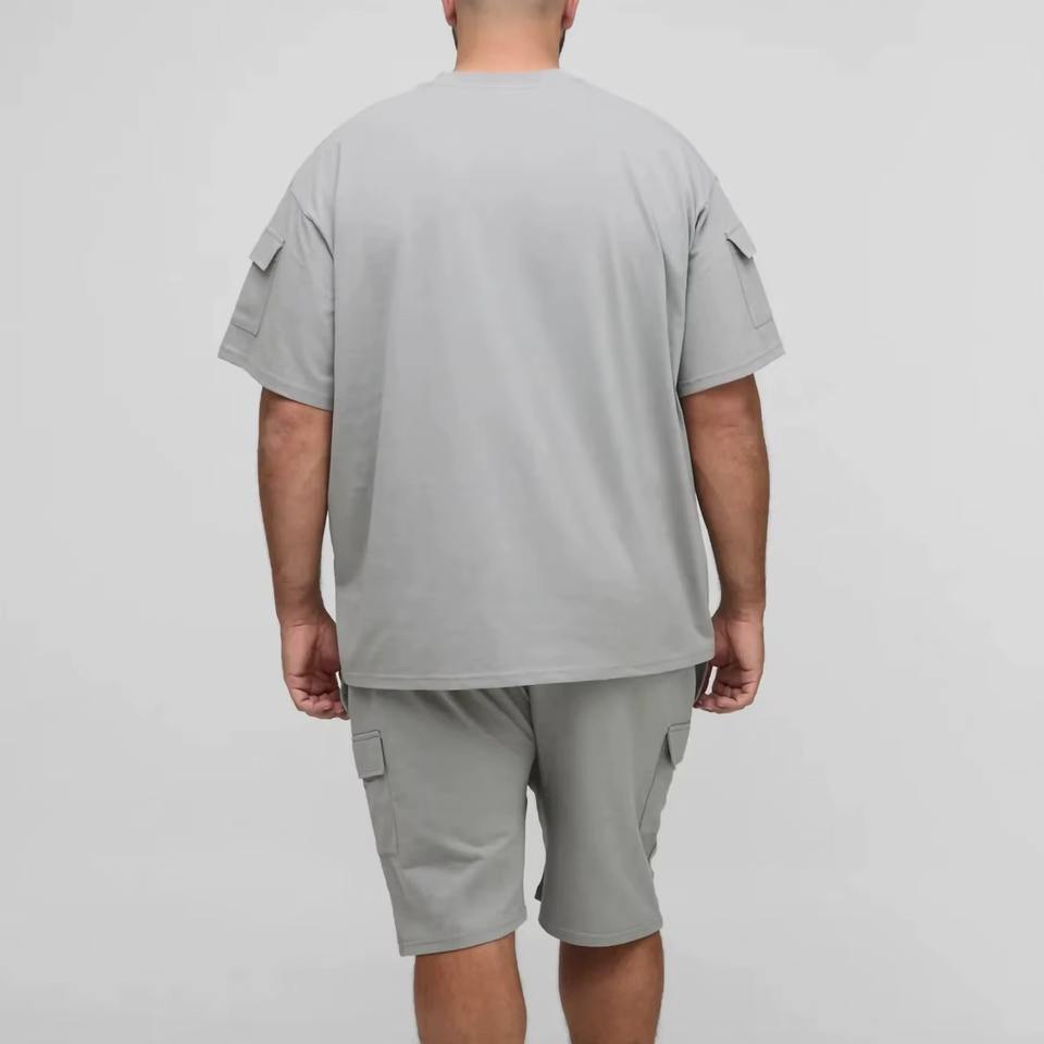 เสื้อฮู้ดซิปและกางเกงขาสั้น 2 ชิ้น ชุดเซ็ตสตรีทแวร์ไซส์ใหญ่ ผ้าโพลีเอสเตอร์/ไนลอน ล้างสีแบบแอซิดวอช พร้อมโลโก้แบบกำหนดเองสำหรับผู้ชาย