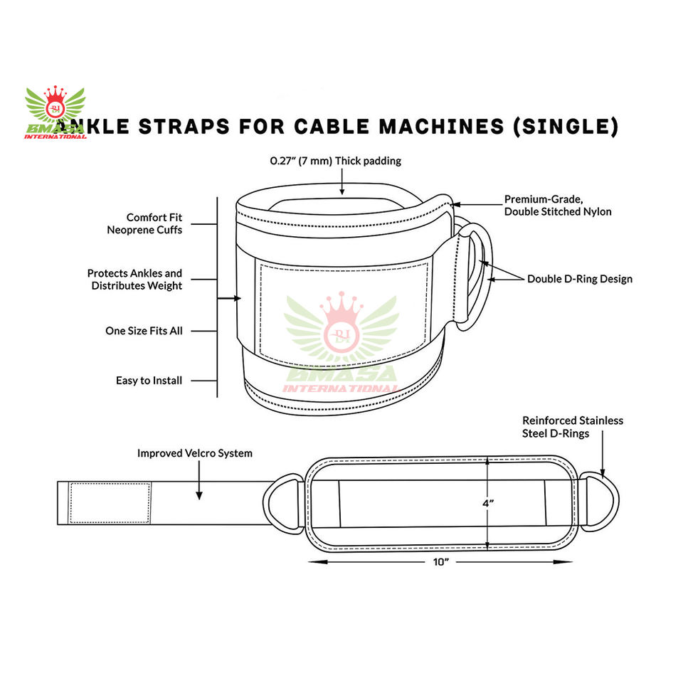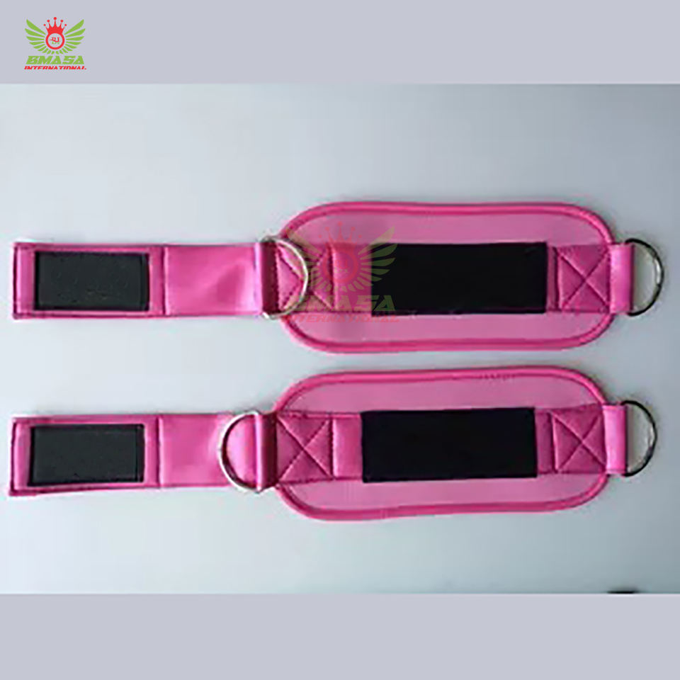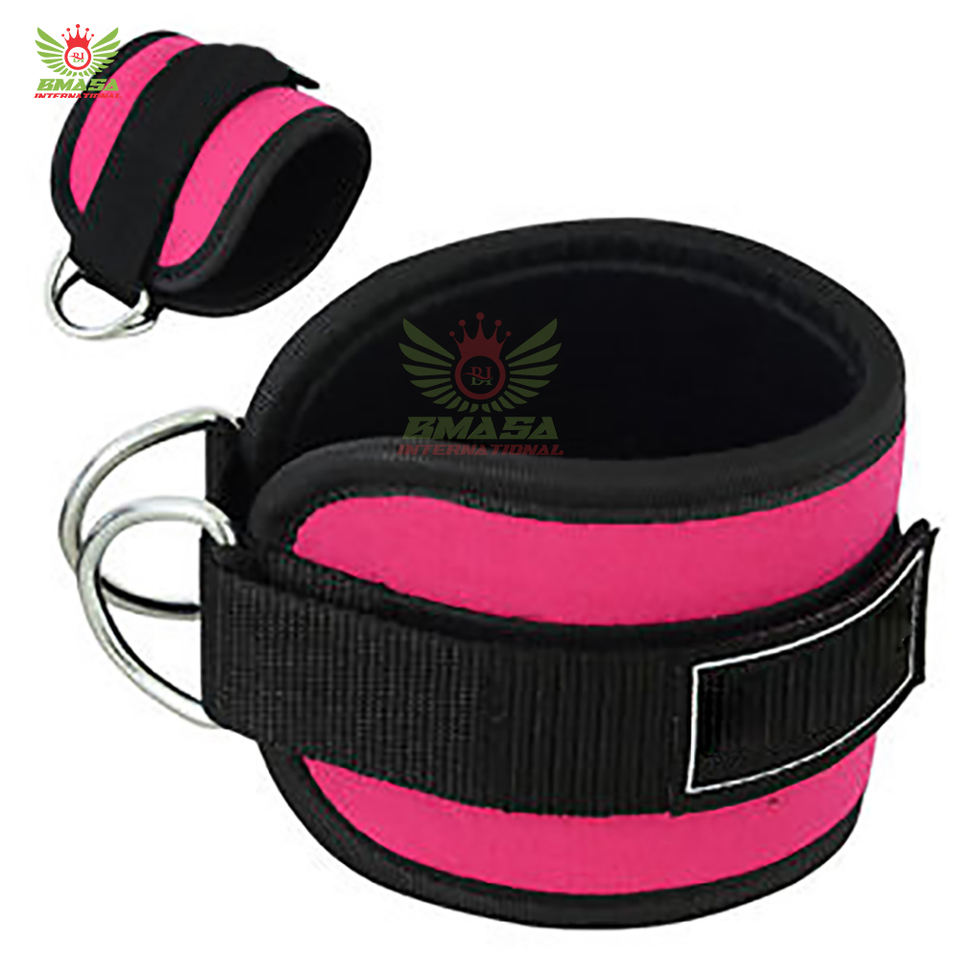 สายรัดข้อเท้าปรับได้ทำจากนีโอพรีนและหนัง พร้อมแผ่นรองกันลื่นสำหรับออกกำลังกายแบบคิกแบ็คและบริหารกล้ามเนื้อก้น รับทำโลโก้ตามสั่ง
