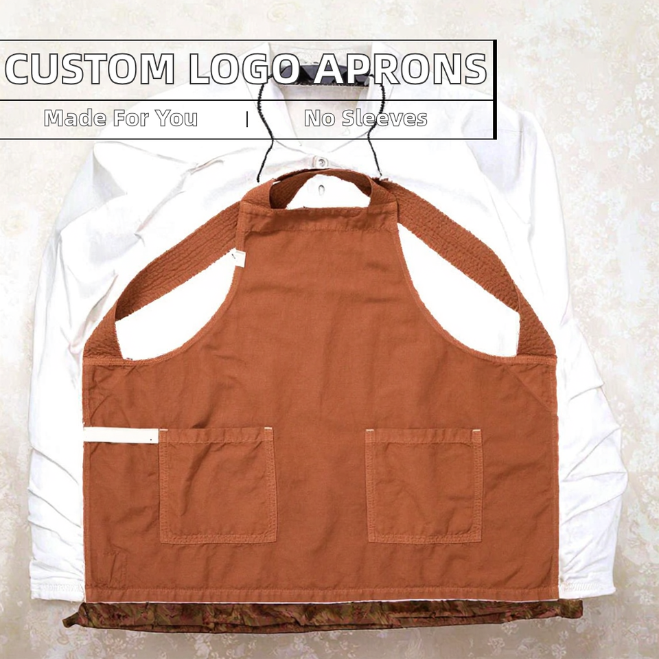 ผ้ากันเปื้อนแบบไม่มีแขนพิมพ์โลโก้ตามสั่ง สำหรับร้านอาหาร ร้านชานม ร้านตัดผม - ชุดยูนิฟอร์มทำงานทันสมัย
