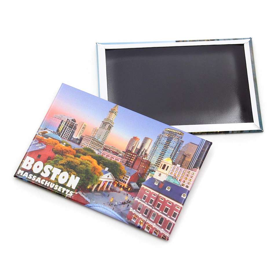 ของที่ระลึกบอสตัน โลโก้แบบกำหนดเอง ของขวัญงานฝีมือ แผ่นดีบุกติดรูปภาพ แม่เหล็กติดตู้เย็น แม่เหล็กติดตู้เย็นแบบแผ่นดีบุก