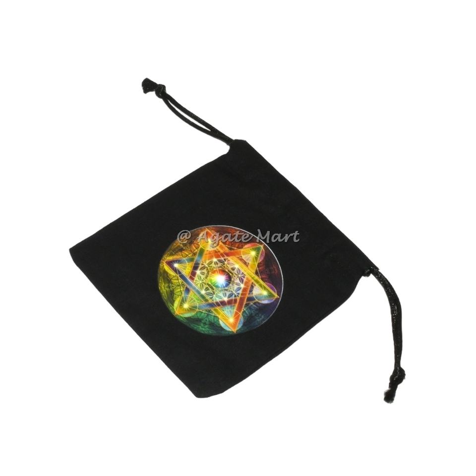กระเป๋าผ้าแคนวาสแบบผ้าคอตตอนแมนดาลาสำหรับบรรจุเครื่องประดับหินโลโก้แบบกำหนดเอง