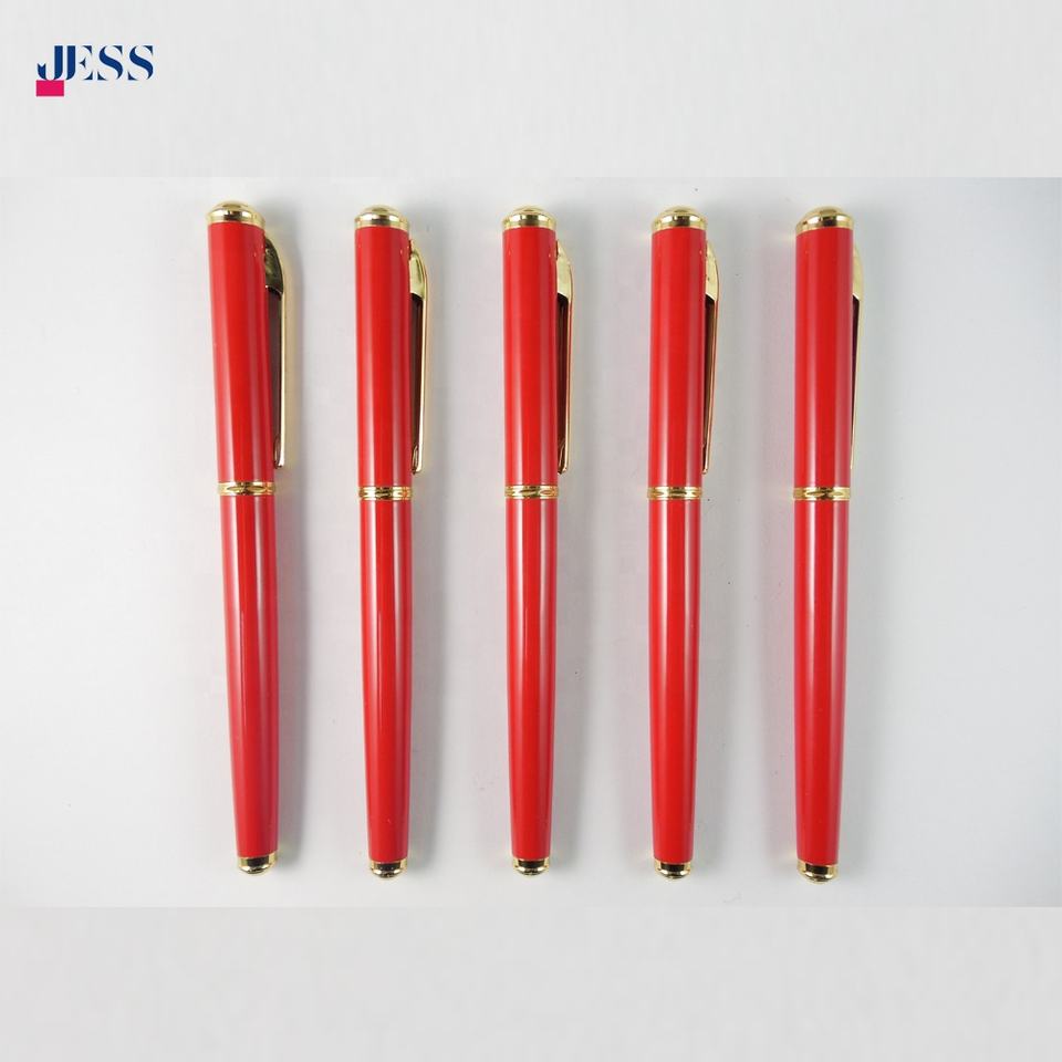 Customized Logo China Red Metal Roller Pen with Golden Parts