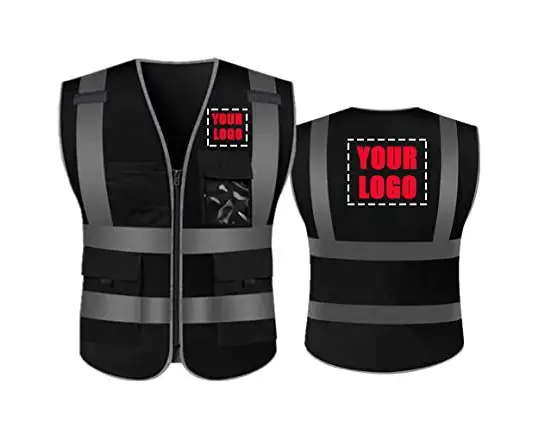 เสื้อกั๊กสะท้อนแสงสำหรับความปลอดภัยเสื้อกั๊กนิรภัยอุปกรณ์ก่อสร้างโลโก้แบบกำหนดเอง