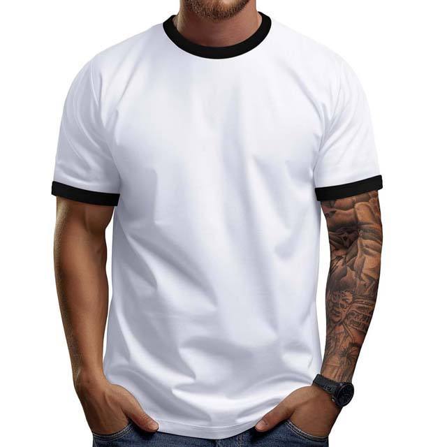 เสื้อยืดริงเกอร์แขนสั้นคอกลมสำหรับผู้ชายเสื้อผ้าคอตตอน100% ขนาดใหญ่พิเศษออกแบบโลโก้ได้ตามต้องการ
