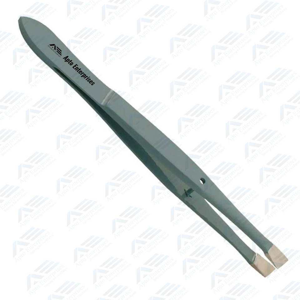 แหนบคิ้วแนวทแยงคีมหนีบคิ้วสแตนเลสสีดำพร้อมปลายแหลมและแบนออกแบบโลโก้ได้ตามต้องการ