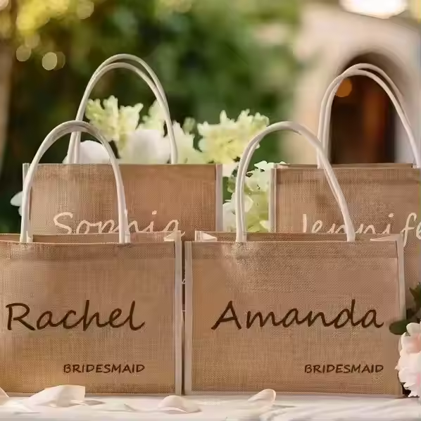 กระเป๋าโท้ทผ้าลินินผ้าป่านปอกระเจาสีล้วนล้วนสำหรับเพื่อนเจ้าสาวของขวัญงานปาร์ตี้โลโก้แฟชั่นแบบกำหนดเอง