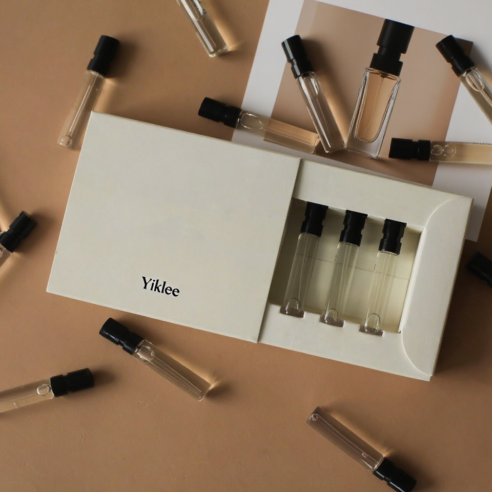 กล่องบรรจุภัณฑ์น้ำหอมแบบพับได้พร้อมโลโก้สั่งทำพิเศษ ชุดกล่องเก็บขวดน้ำหอมตัวอย่าง สำหรับขวดขนาด 2 มล. 3 มล. 5 มล.