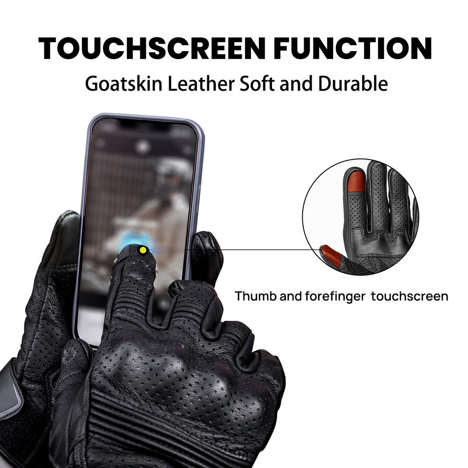 ถุงมือมอเตอร์ไซค์หนังแท้ป้องกันนิ้วเต็มรูปแบบ พร้อมโลโก้สั่งทำพิเศษ กันลม รองรับหน้าจอสัมผัส ถุงมือหนังสำหรับแข่งรถ