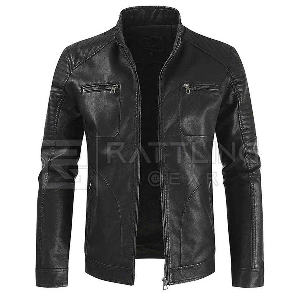 เสื้อแจ็กเก็ตหนังผู้ชายคอตั้งเสื้อผ้าแฟชั่นสไตล์สตรีทปรับแต่งโลโก้