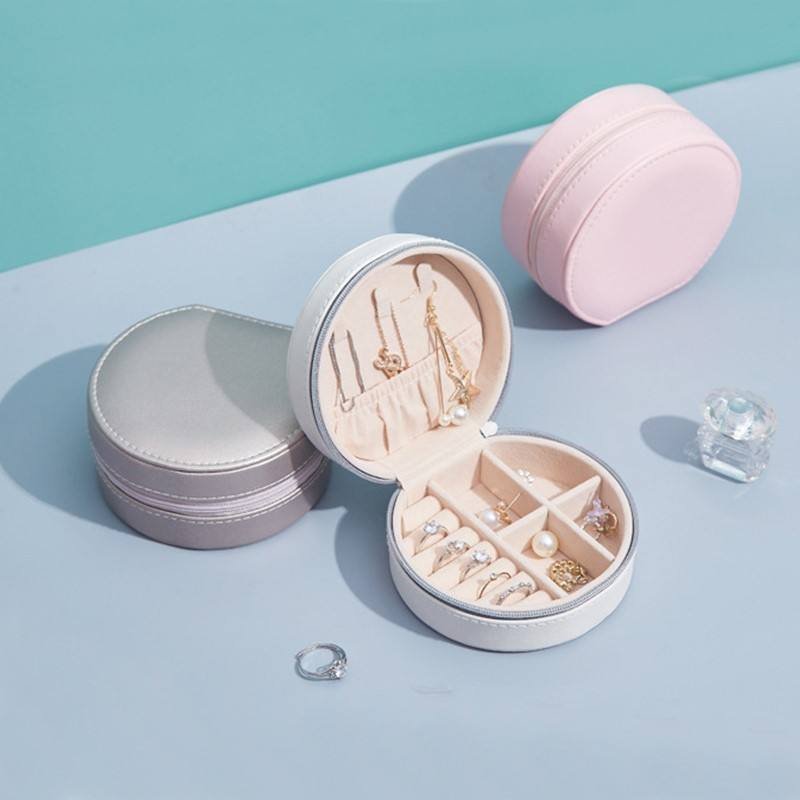 Customized Logo High Quality PU Leather Zipper Travel Ring Necklace Jewelry Box Large Capacity Waterproof Earring Storage Box