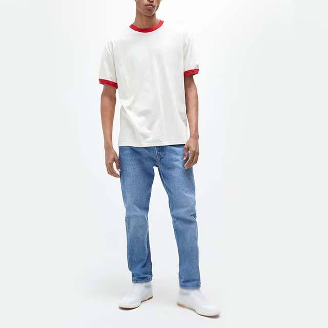 เสื้อยืดคอกลมแขนสั้นผู้ชายสไตล์ High Street ปักโลโก้ตามสั่ง ผ้าถัก 100% คอตตอน ระบายอากาศได้ดี