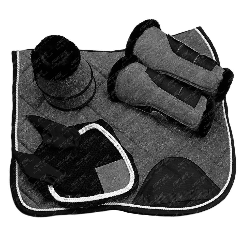ชุดแผ่นรองอานม้าแบบมีสไตล์โลโก้แบบกำหนดเองรองเท้าบูททรงระฆังผ้าคลุมหน้าม้าบิน