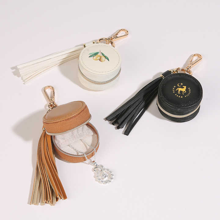 กล่องใส่เครื่องประดับแบบพกพาหนัง PU ทรงกลมขนาดเล็ก พร้อมซิป สำหรับใส่ต่างหู บรรจุภัณฑ์สำหรับเดินทาง รับทำโลโก้ตามสั่ง ขายดี