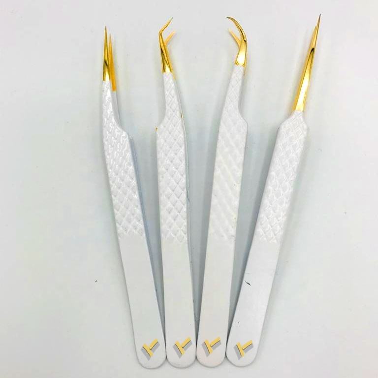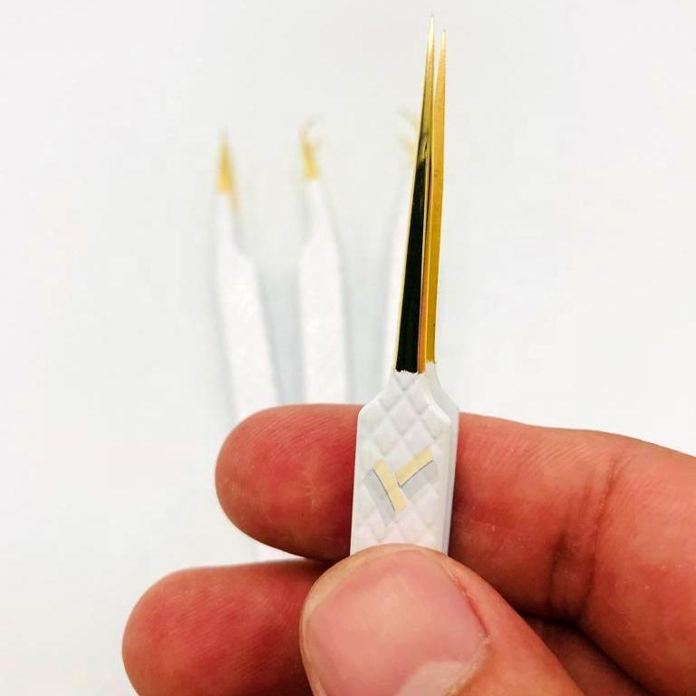ที่หนีบขนตาปลอมสแตนเลสสีขาวแบบเรียบมีเพชรแหนบปลายแหลมสีทองปรับแต่งโลโก้ได้ตามต้องการจากญี่ปุ่น