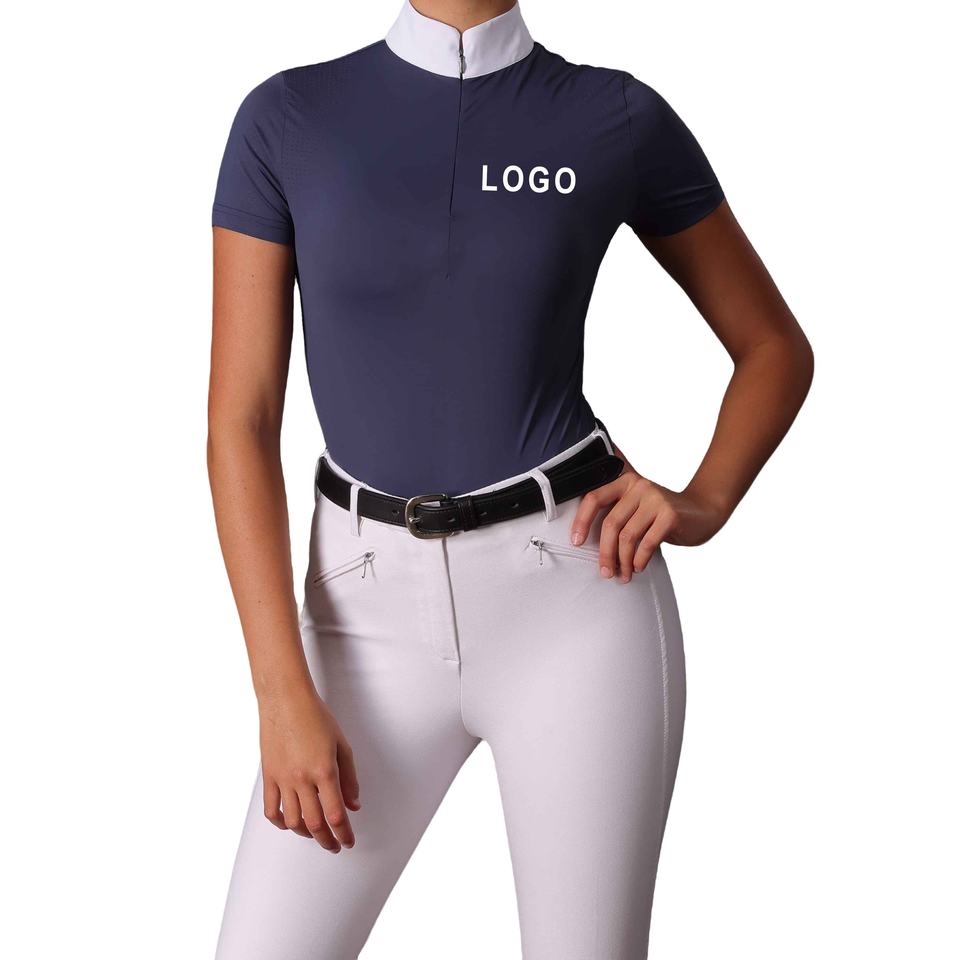 เสื้อขี่ม้าผู้หญิงทรงเข้ารูป ผ้าระบายอากาศอย่างดี ตกแต่งโลโก้ตามสั่ง พร้อมซิปและกระดุม
