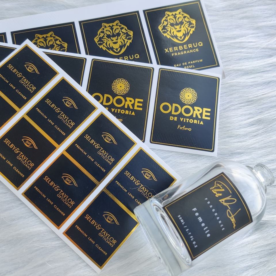 สติกเกอร์ติดขวดน้ำหอมหรูหรา พิมพ์โลโก้ตามสั่ง ป้ายสติกเกอร์ฟอยล์ทอง กันน้ำ สำหรับขวดเครื่องสำอาง