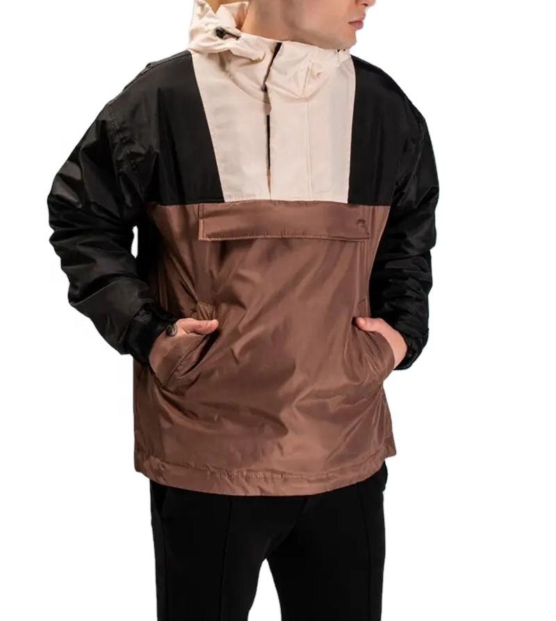 Customized Logo Men's Autumn Windbreaker Jacket Canvas Vintage Hooded Breathable Half Zip Closure Waterproof Windproof Street