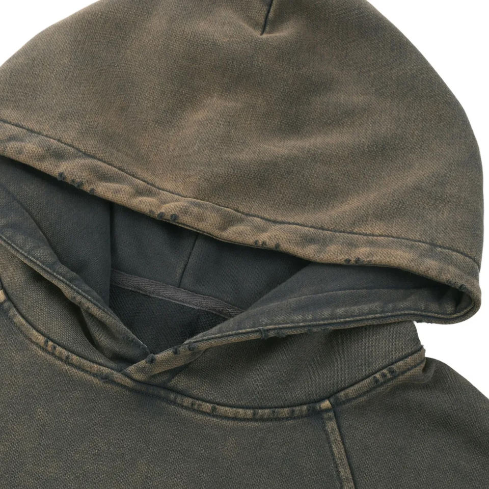 เสื้อฮู้ดดี้ทรงบ็อกซี่ 340gsm สไตล์เรโทร ลุคย้อนยุค ซักฟอก ลุคดิสเทรส คุณภาพสูง สวมใส่สบาย ทรงหลวม สำหรับผู้ชาย โลโก้แบบกำหนดเองได้ แบบยูนิเซ็กส์