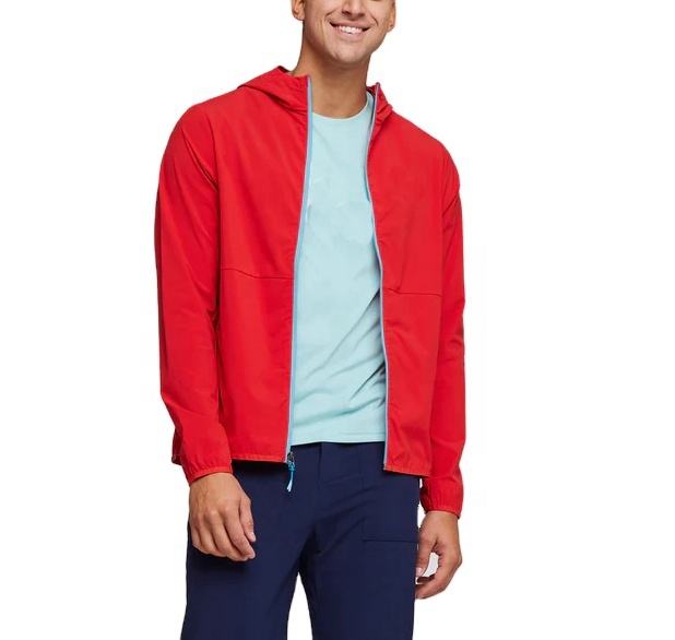 แจ็กเก็ตกันน้ำแบบมีซิปมีฮู้ดน้ำหนักเบาเรียบง่ายสำหรับฤดูใบไม้ผลิฤดูใบไม้ร่วงโลโก้ออกแบบได้ตามต้องการ