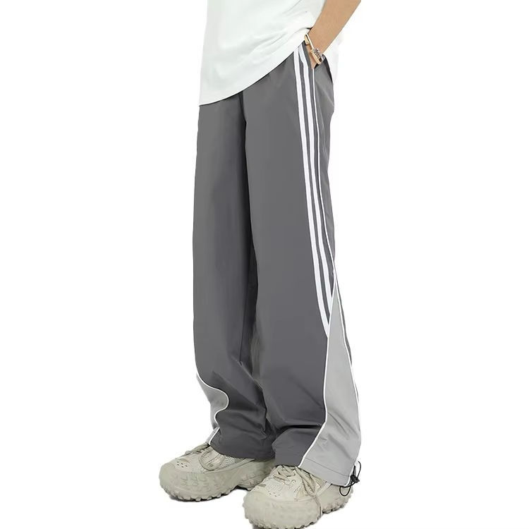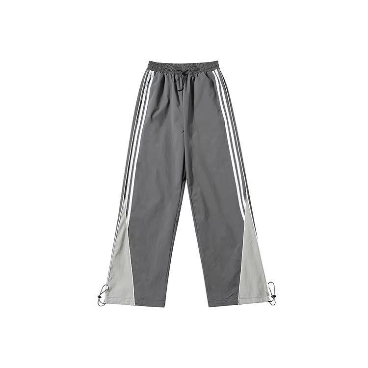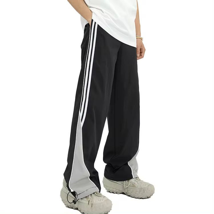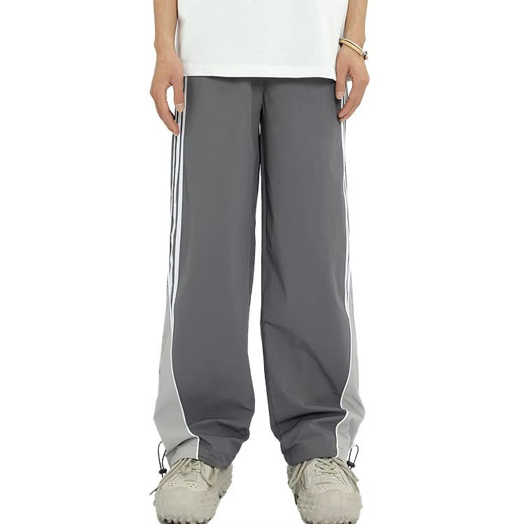 กางเกงวินด์เบรกเกอร์ผู้ชายลายโลโก้แบบกำหนดเอง กางเกงวอร์มทรงบานสไตล์วินเทจพร้อมแถบโค้งตรง กางเกงแทร็คไนลอน 2026