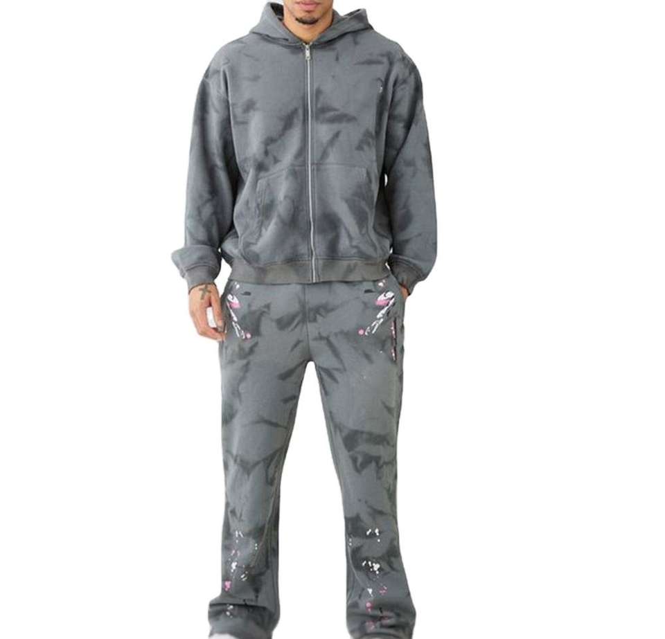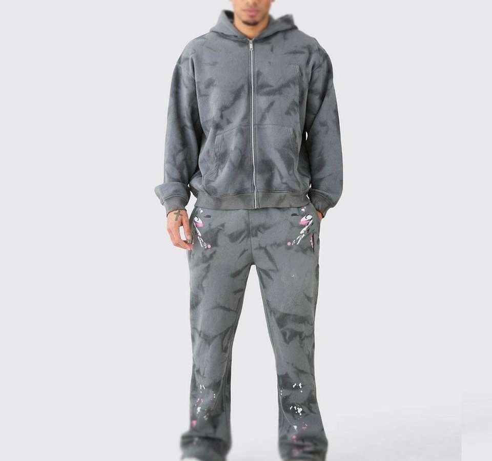 Customized Logo Mens Acid Wash Tracksuit OEM/ODM Oversized Fit Two-Piece Set