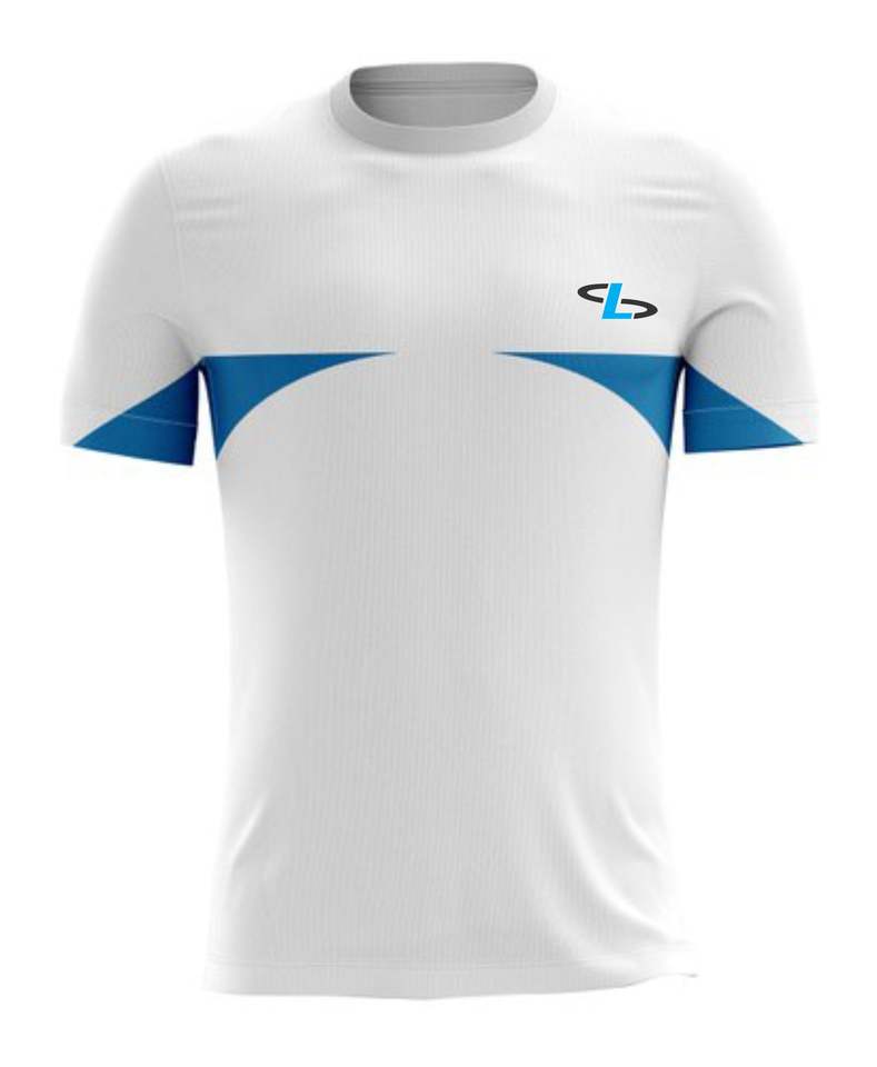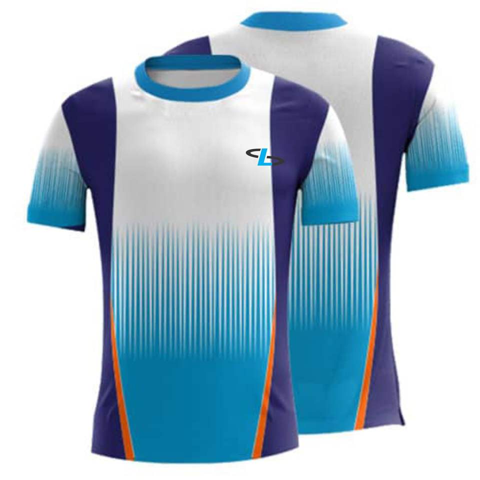เสื้อยืดกีฬาสำหรับผู้ชายพิมพ์ซับลิเมชันเสื้อฝึกโพลีเอสเตอร์ออกแบบโลโก้ได้ตามต้องการ