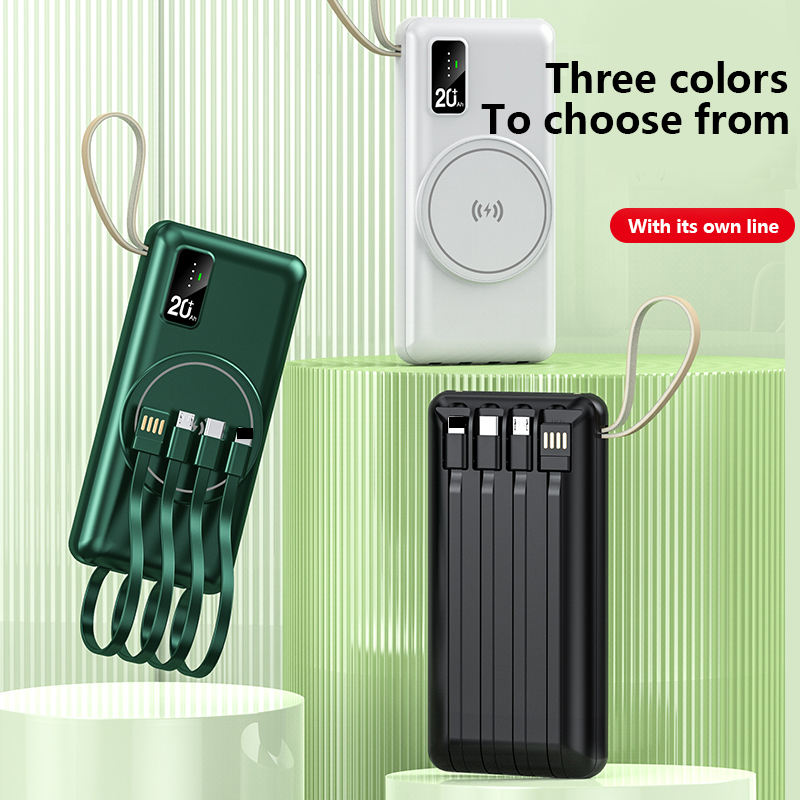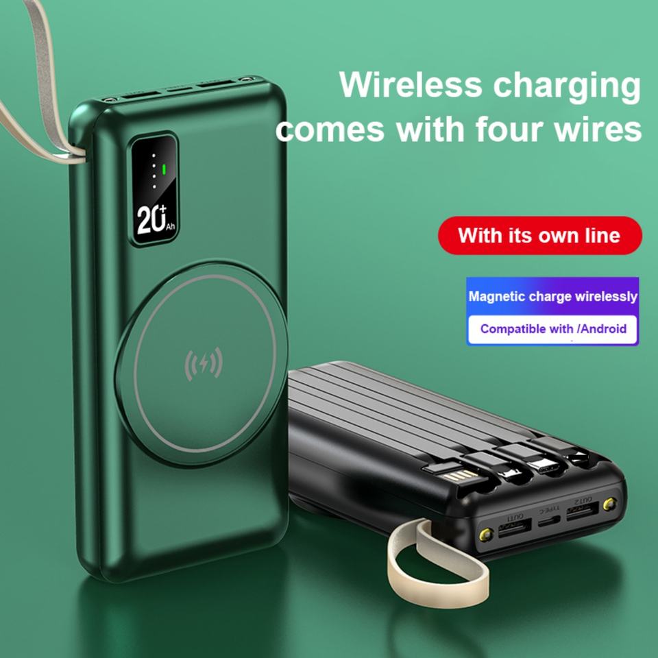 แบตเตอรี่ลิเธียมโพลิเมอร์แบบพกพา 20000mAh พร้อมไฟ LED แม่เหล็กไร้สาย ชาร์จเร็ว โลโก้สั่งทำได้