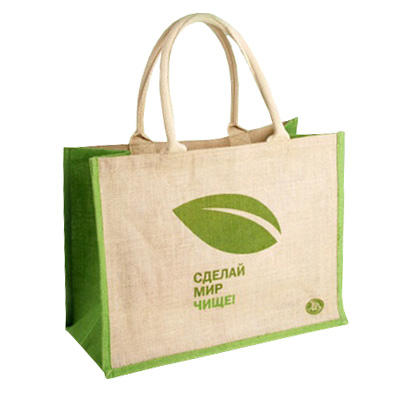 Customized Logo Print Burlap Tote Bag with Padded Rope Handle Natural Color PP Laminated Jute Grocery Bag with Green Sides