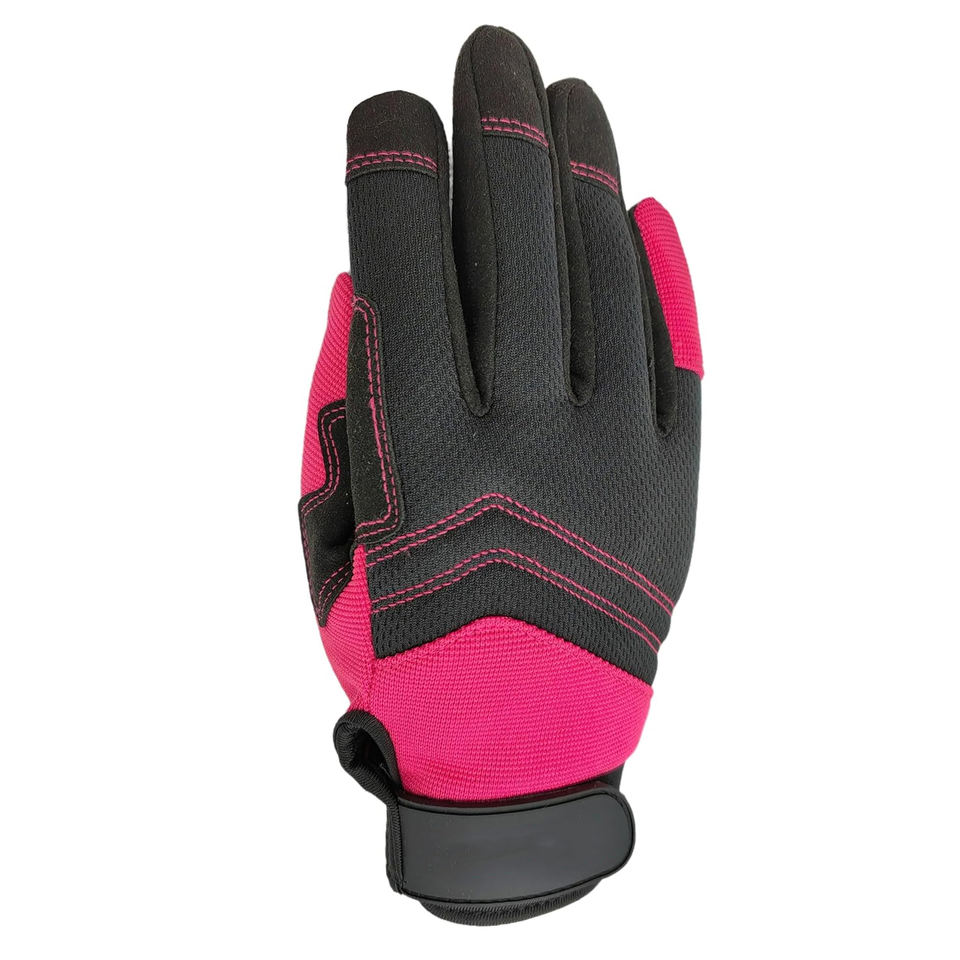 ถุงมือทำสวนสำหรับผู้ใหญ่ถุงมือสวมมือเพื่อความปลอดภัยในสวนสีชมพูพิมพ์โลโก้ได้ตามต้องการ