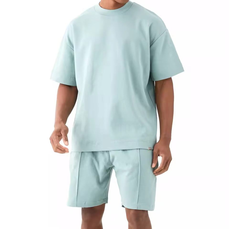เสื้อยืดพิมพ์โลโก้ตามสั่ง ขายดีที่สุด MOQ ต่ำ ระบายอากาศได้ดี พร้อมชุดเซ็ตเสื้อยืดแขนสั้น พิมพ์โลโก้ตามสั่ง ไซส์พลัสสำหรับผู้ชาย ชุดเสื้อยืดสองชิ้น