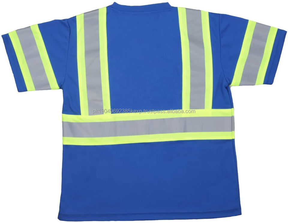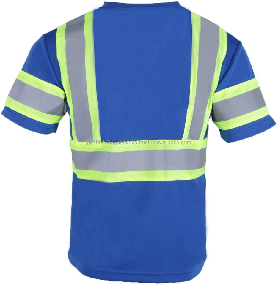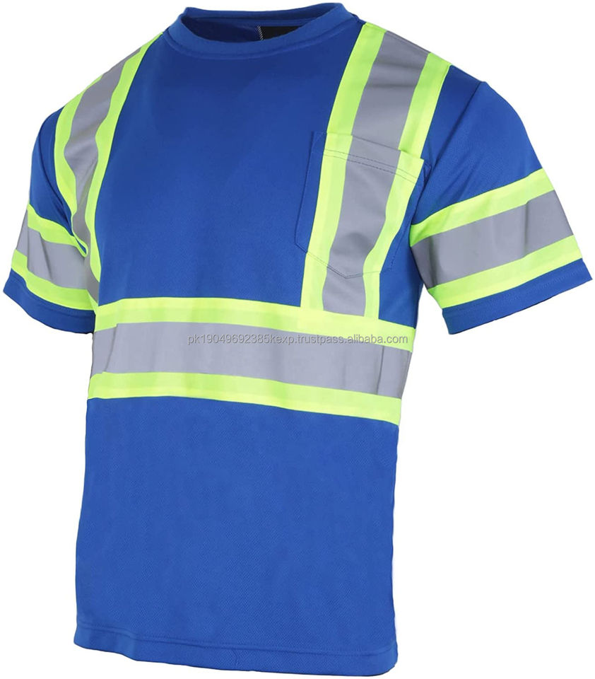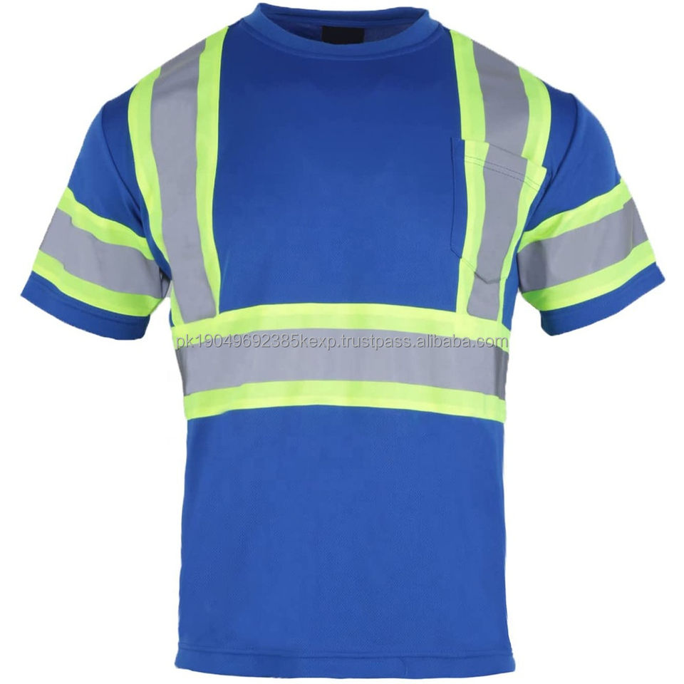 เสื้อยืดนิรภัยผู้ชายพิมพ์โลโก้ตามสั่ง ผ้าสะท้อนแสงมองเห็นได้ชัดเจนสำหรับการวิ่ง ระบายอากาศได้ดี ผลิตในปากีสถานสำหรับเด็กผู้ชาย