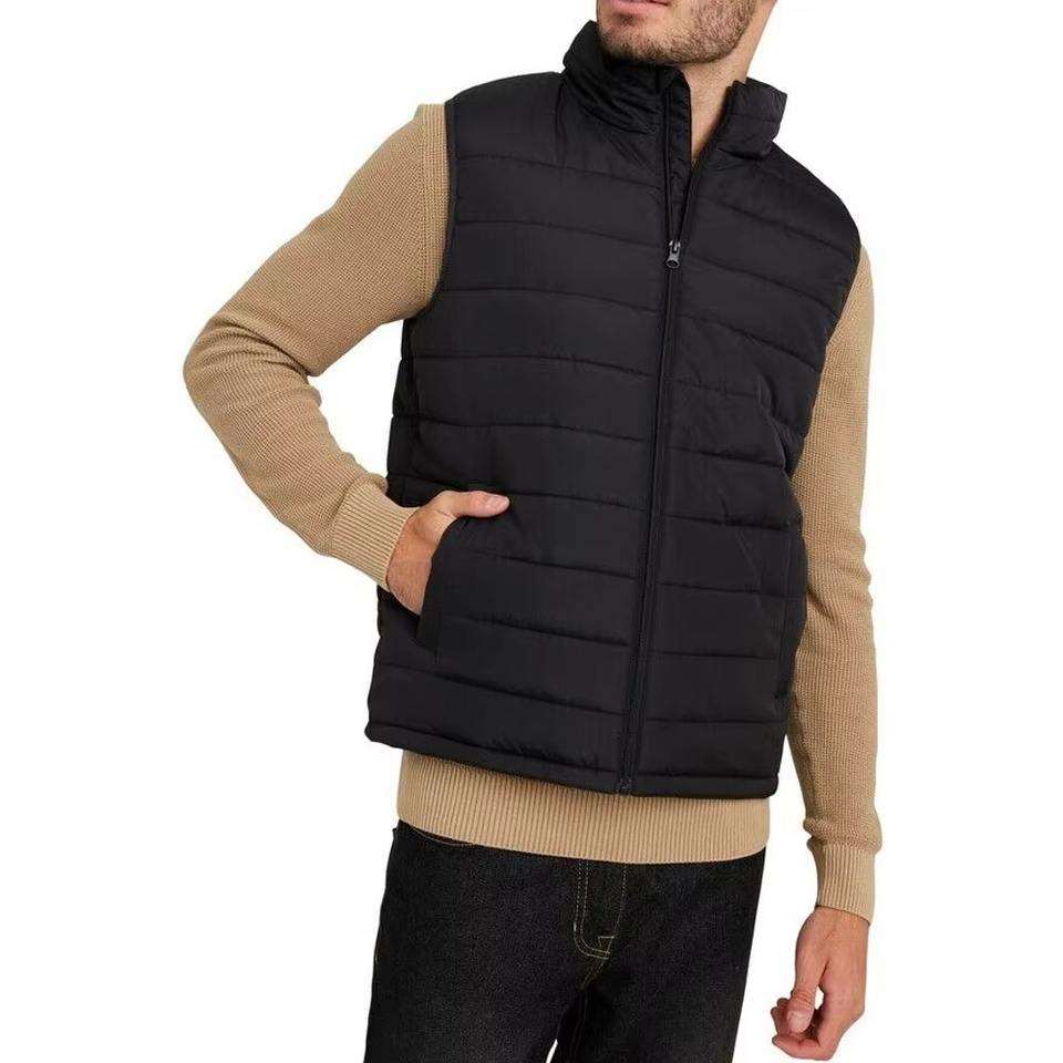 เสื้อกั๊กพัฟเฟอร์ผู้ชายพิมพ์โลโก้ตามสั่ง คุณภาพสูง แขนกุด สไตล์ลำลอง บริการ OEM