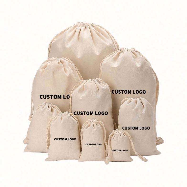 ถุงผ้าแคนวาสลินินพิมพ์โลโก้ตามสั่ง ใช้ซ้ำได้ เป็นมิตรกับสิ่งแวดล้อม สำหรับใส่เทียน สบู่ ของขวัญ พร้อมเชือกผูก
