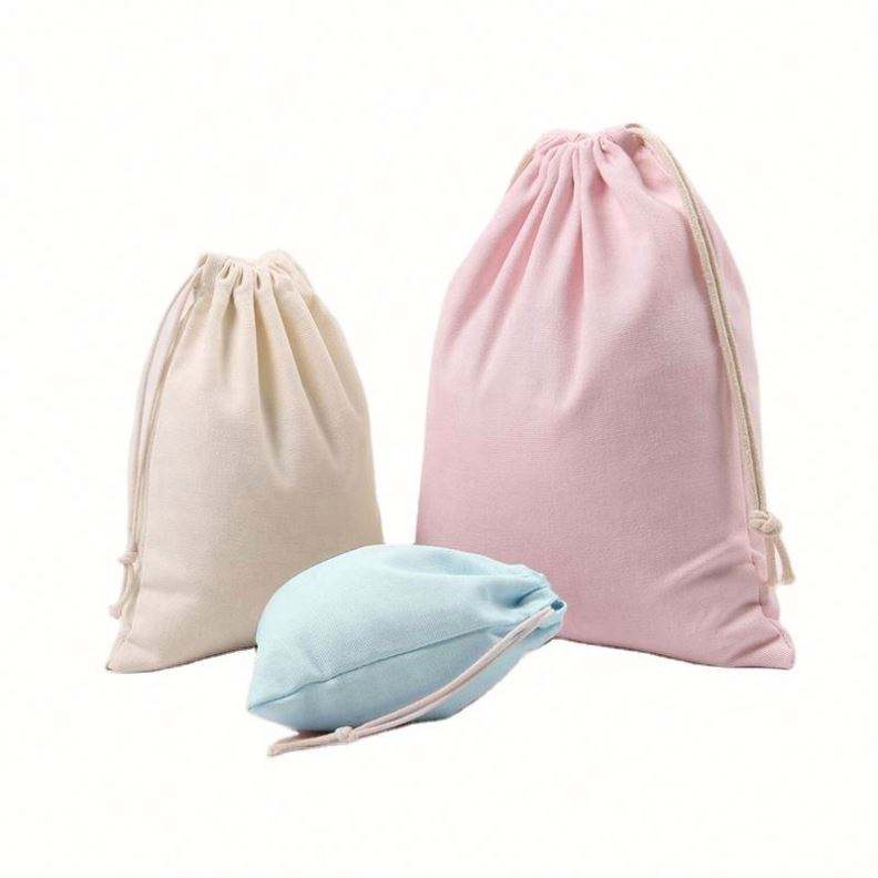 ถุงผ้าฝ้ายแคนวาสแบบมีเชือกรูดสำหรับใส่ของกันฝุ่น