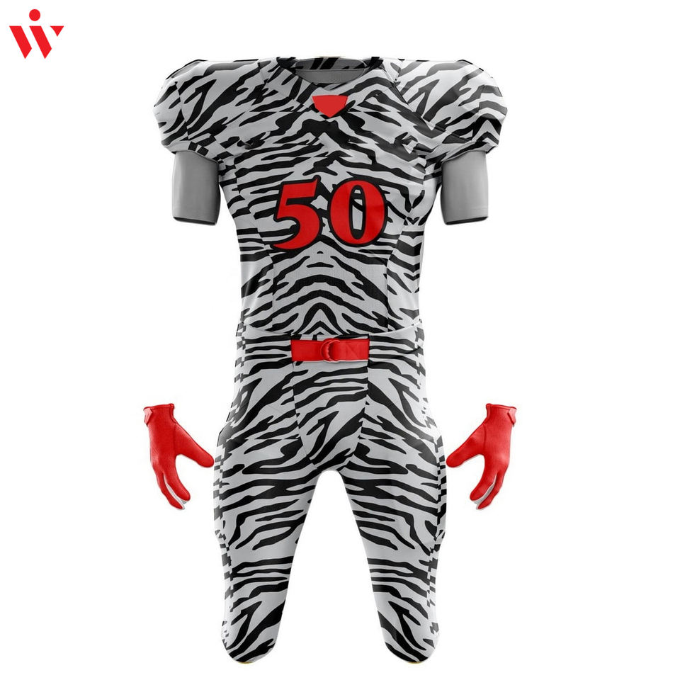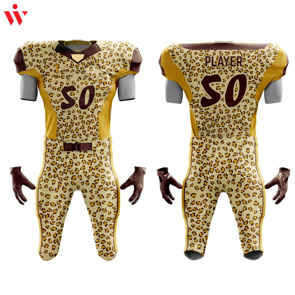 ชุดเสื้อผ้าเล่นกีฬาอเมริกันฟุตบอลชุดเล่นกีฬาผ้าโพลีเอสเตอร์ระบายอากาศได้แขนสั้นขนาดใหญ่พิเศษพิมพ์โลโก้ได้ตามต้องการ