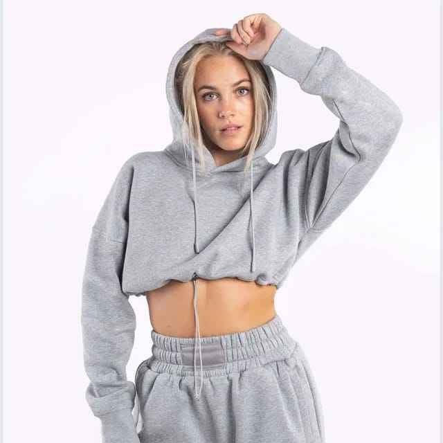 เสื้อครอปฮู้ดดี้ผู้หญิง พิมพ์โลโก้ตามสั่ง น้ำหนักเบา ดีไซน์สวยที่สุด / เสื้อครอปฮู้ดดี้ผู้หญิง สวมใส่สบายๆ