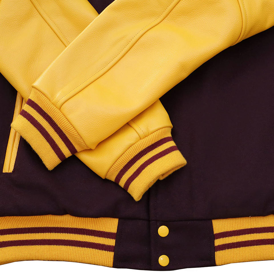 เสื้อแจ็คเก็ตเบสบอลแบบวาร์ซิตี้สำหรับผู้ชาย พิมพ์โลโก้ตามสั่ง ขายส่ง ระบายอากาศได้ดี คอปกแบบคอกลม แขนยาว