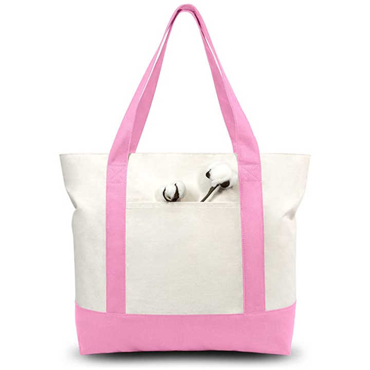 กระเป๋าผ้าแคนวาสขนาดกลางแบบมีซิปและสายสะพายไหล่ พิมพ์โลโก้ตามสั่ง ผ้าดิบธรรมดา