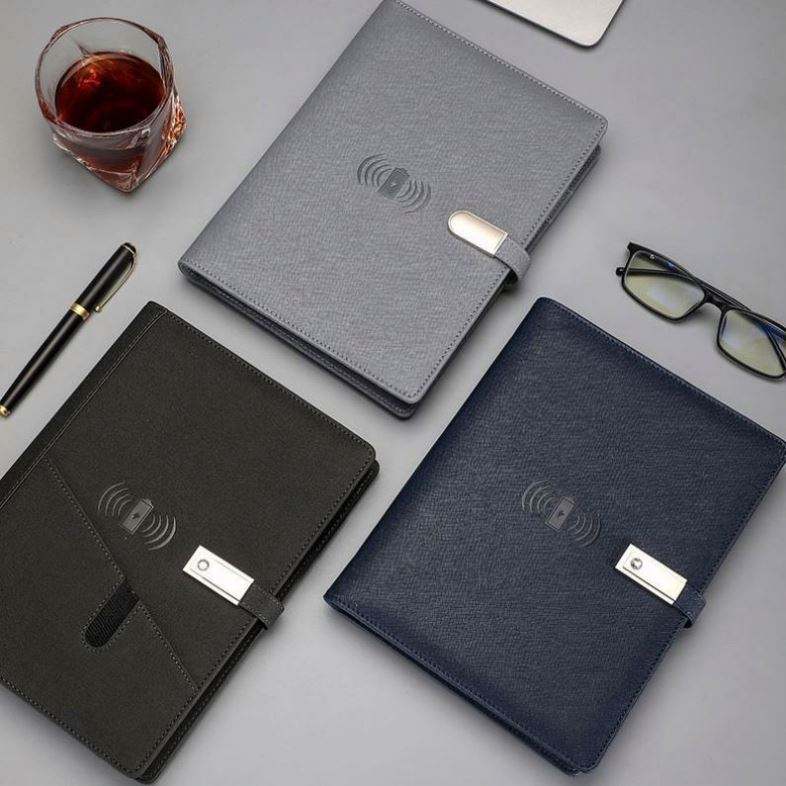 สมุดบันทึก A5 ปกหนัง PU พร้อมระบบชาร์จไร้สาย