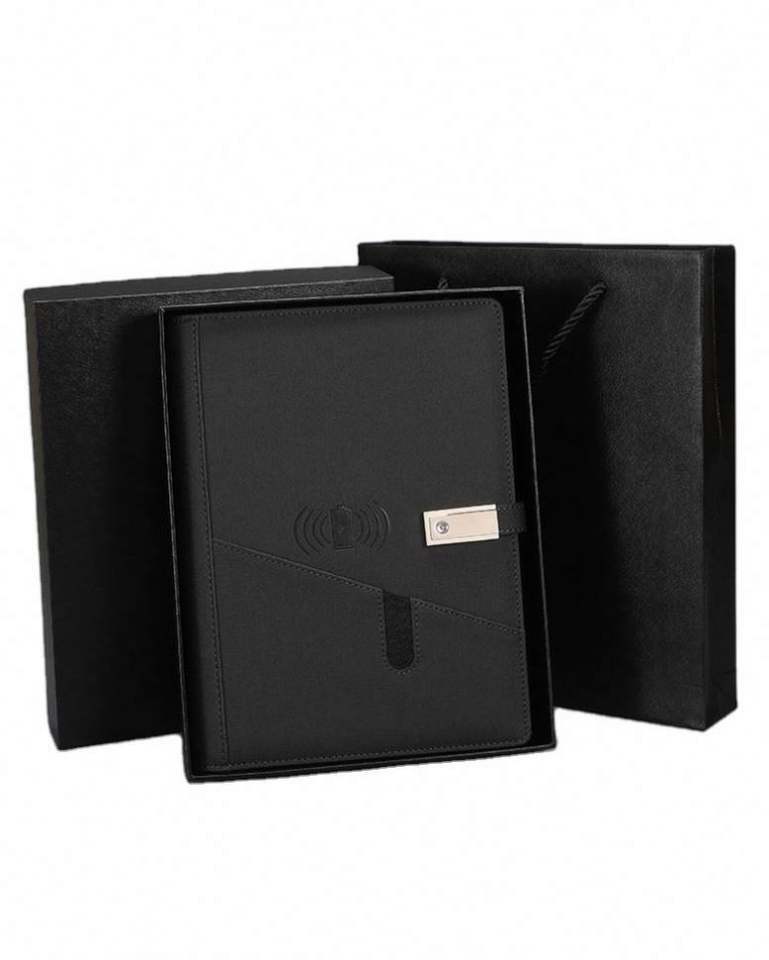 สมุดโน้ตอัจฉริยะพร้อมที่ชาร์จไร้สาย A5 แบบมัลติฟังก์ชั่น ปกหนัง PU สไตล์ธุรกิจ ชุดสมุดบันทึกพร้อมโลโก้สั่งทำพิเศษเพื่อการส่งเสริมการขาย