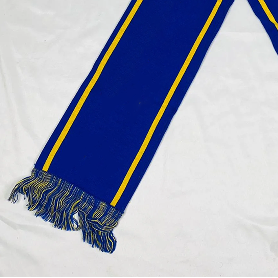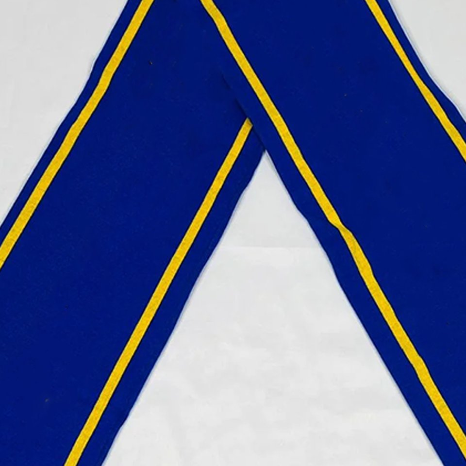 ผ้าพันคอแบบมัลติฟังก์ชั่นสีน้ำเงินรอยัลขอบทองพร้อมโลโก้สั่งทำพิเศษ ผ้าพันคอแบบดั้งเดิม ผ้าคาดสำเร็จการศึกษา ผ้าฝ้ายอะคริลิกคุณภาพพรีเมียม