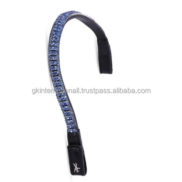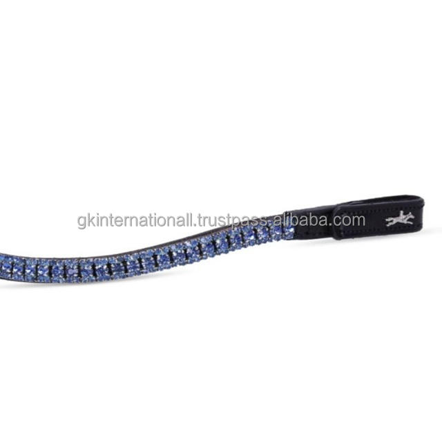 สายคาดหน้าผากม้าหนังแท้สีดำตกแต่งคริสตัลสีน้ำเงินแซฟไฟร์ประดับเพชรแบบกำหนดเองได้สำหรับบังเหียน