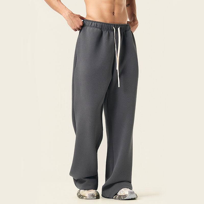 กางเกงวอร์มขาตรงทรงหลวมพิมพ์โลโก้ตามสั่ง ผ้าฟลีซคอตตอน 100% สำหรับผู้ชาย