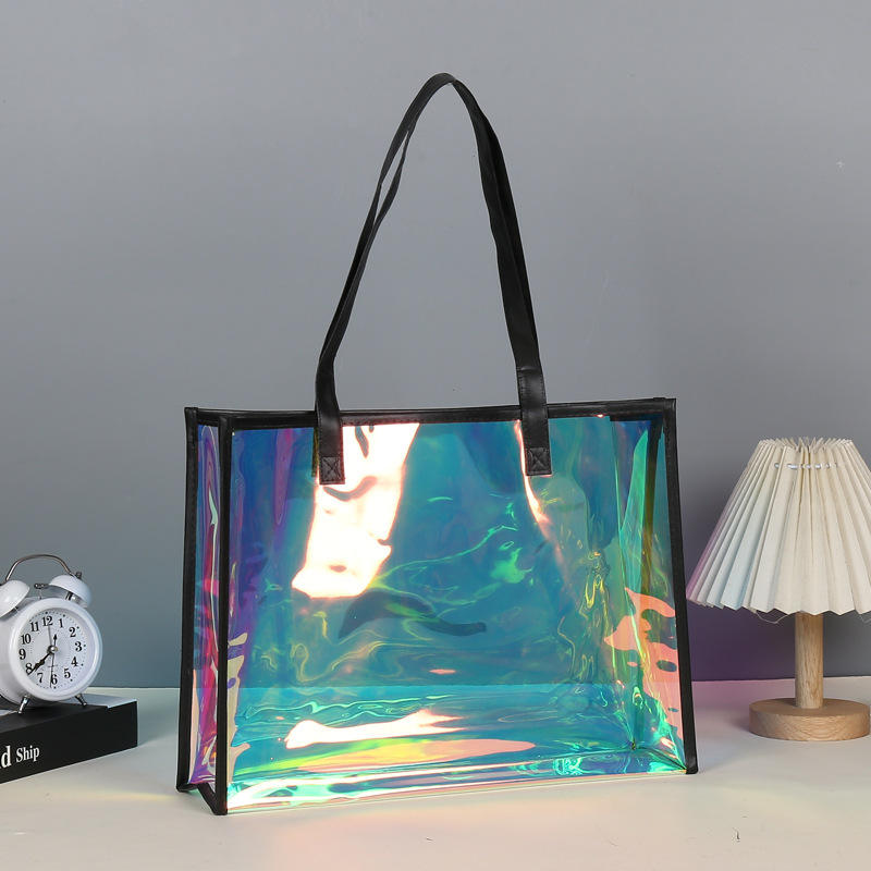 กระเป๋าหิ้วพีวีซีใสพิมพ์โลโก้ได้ กระเป๋าช้อปปิ้งกันน้ำ ใช้ซ้ำได้ สำหรับใส่เครื่องสำอาง ไปทะเล ใช้ในชีวิตประจำวัน