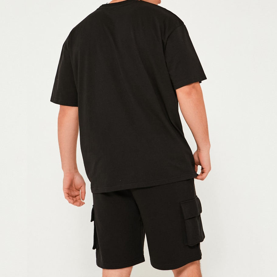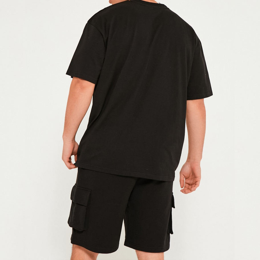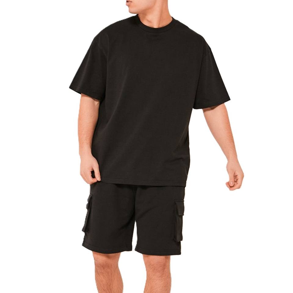 ชุดเสื้อยืดและกางเกงขาสั้นลำลองผู้ชายผ้าถักระบายอากาศได้ดี น้ำหนัก 180 กรัม ผลิตจากโพลีเอสเตอร์/คอตตอน พิมพ์ลายด้วยความร้อน พร้อมโลโก้แบบกำหนดเอง